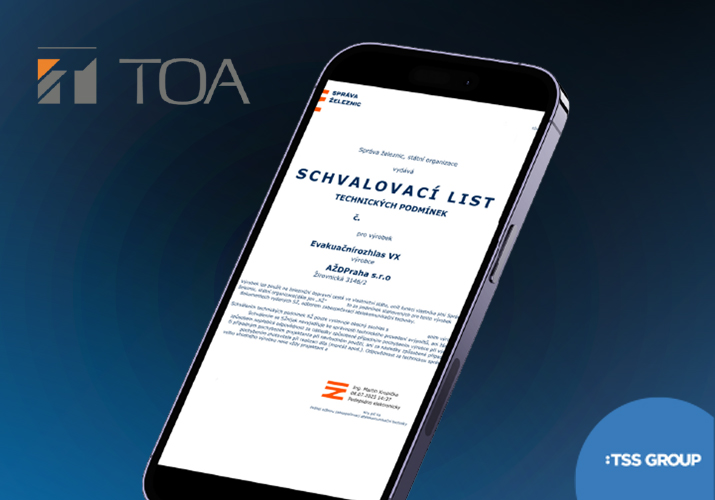 S potešením oznamujeme, že náš evakuačný a rozhlasový systém TOA VX-3000 úspešne získal certifikáciu pre použitie v rámci Českých dráh a železničnej infraštruktúry v ČR.