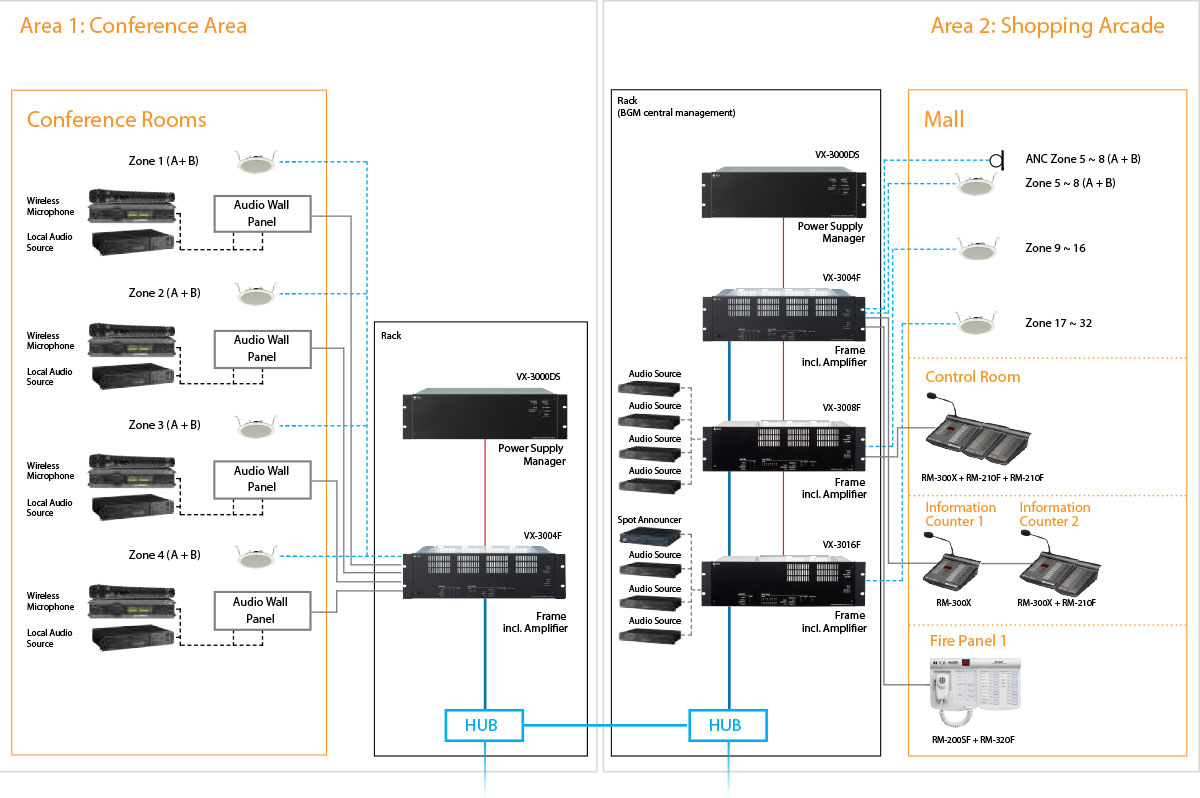 - zameriava sa na požiarny evakuačný rozhlas, zariadenia pre verejné ozvučenie a konferenčné systémy