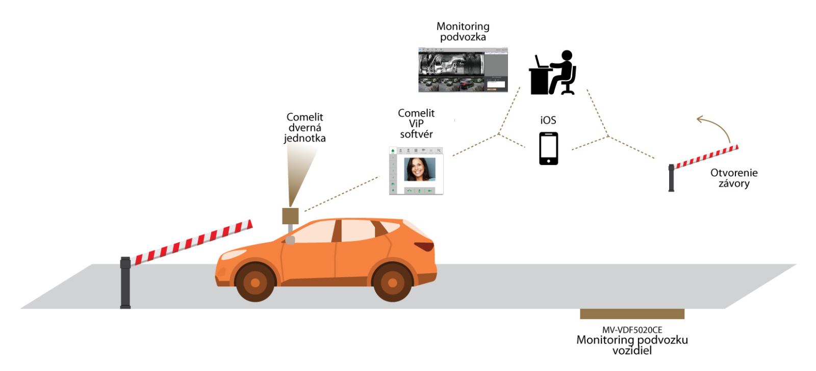 Každé vozidlo vchádzajúce do areálu prejde cez video kontrolu podvozkovej časti, zabudovanou vo vozovke. Obraz z Dahua MV-VDF5020CE-00 je k dispozícii strážnikovi ihneď, ešte než návštevník zazvoní na zvonček vrátnice. Skontrolovať je možné vozidlá s šírkou až 4,5 metra do maximálnej rýchlosti 80km / h. Výška podvozka je v rozmedzí 60-2000mm.