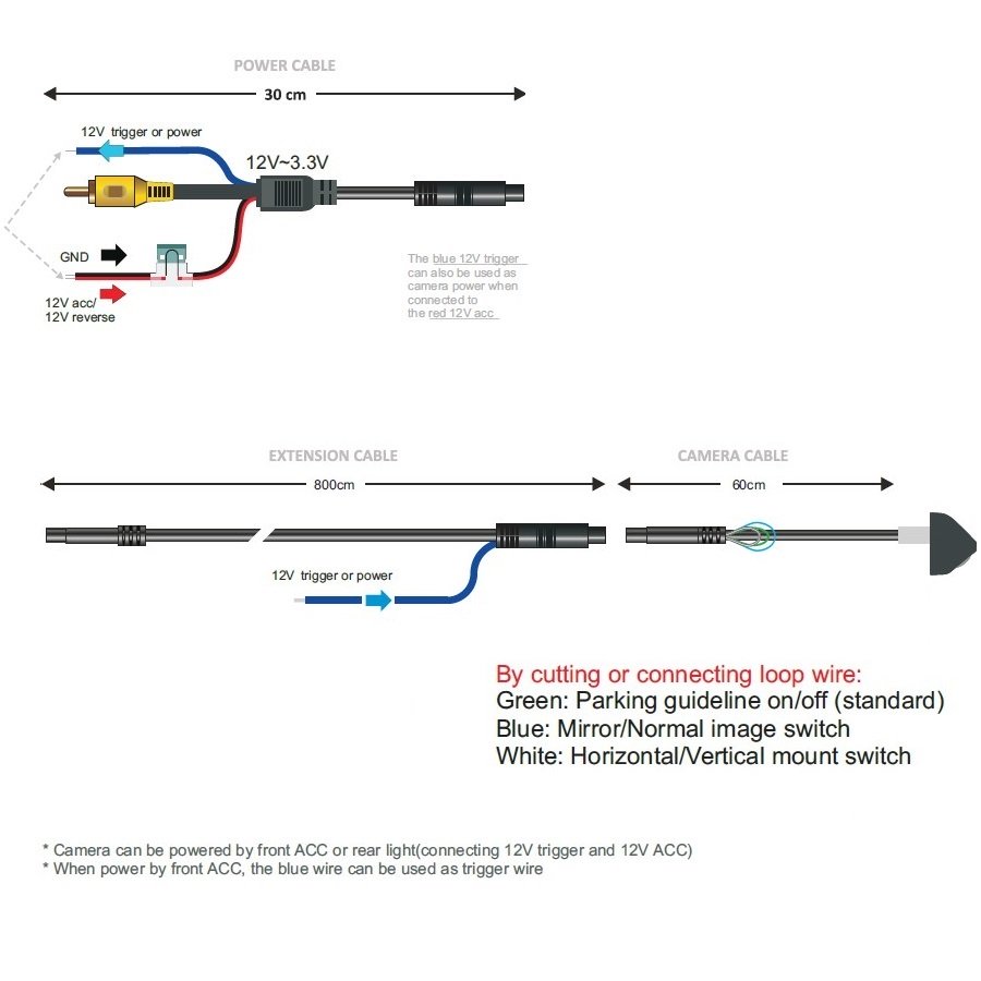 Univerzálna parkovacia kamera s uhlom záberu 128° pre horizontálnu, alebo vertikálnu inštaláciu. Kamera má možnosť zapnúť/vypnúť vodiace čiary, zrkadlový obraz, osadenie do otvoru 8 mm.
