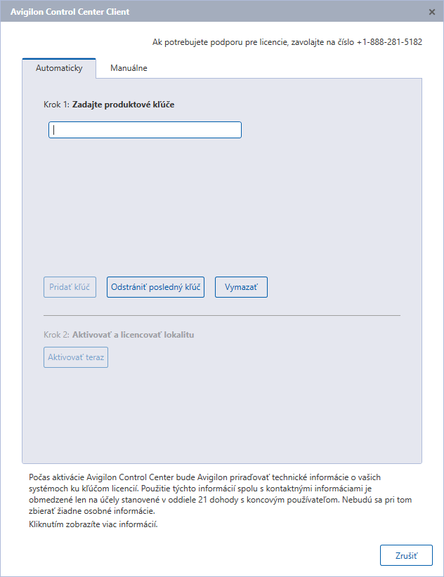 Pre aktiváciu licencie je nutné zadať licenčný kľúč na vašom zariadení v nasledujúcom poli: