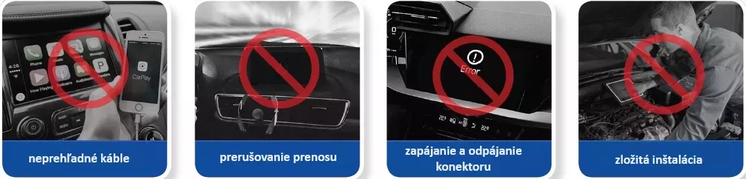- prevádza CarPlay / Android auto po kábli na bezdrôtové