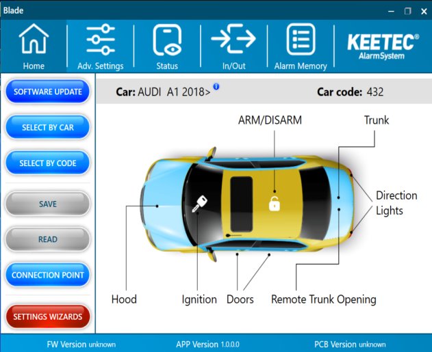 Autoalarm Keetec BLADE CONTROL je vhodný pre vozidlá s 12/24V palubným napätím. Externý autorizačný modul umožňuje bezdotykovú autorizáciu prostredníctvom mobilného telefónu alebo štýlových diaľkových ovládačov, čo zabezpečuje pohodlné a moderné používanie v súčasných automobiloch. Modul rozpoznáva majiteľa vozidla prostredníctvom Bluetooth komunikácie medzi modulom a mobilným telefónom s aplikáciou Keetec BT.