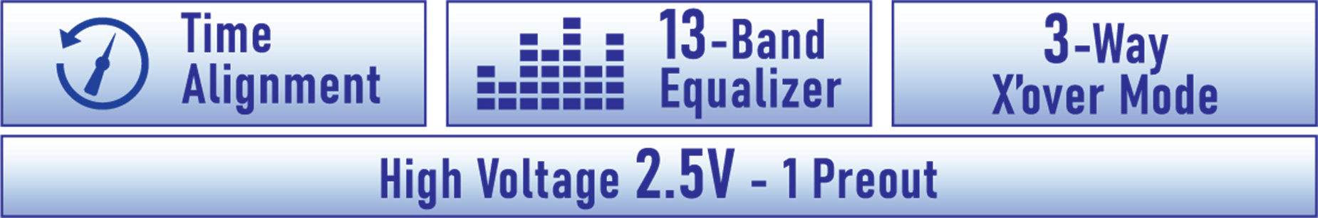 - integrované DSP a DTA a 13-pásmový grafický equalizér Aplikácia