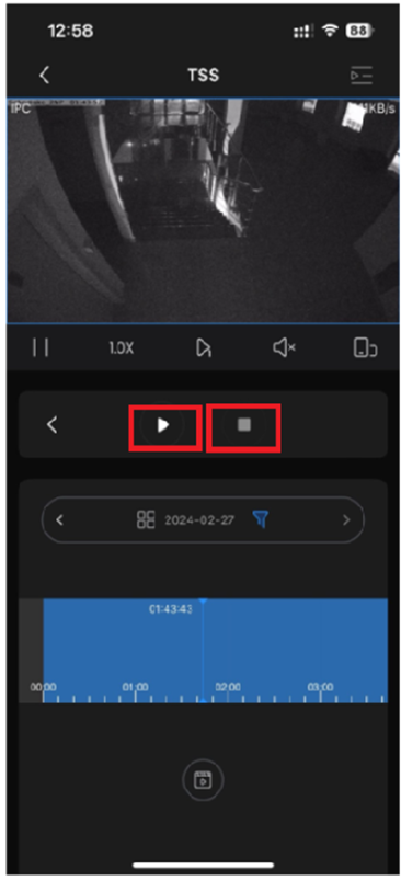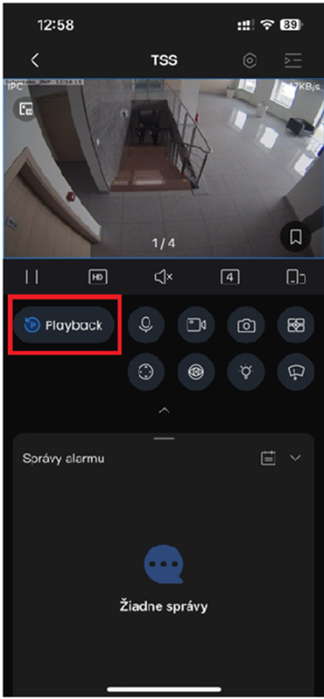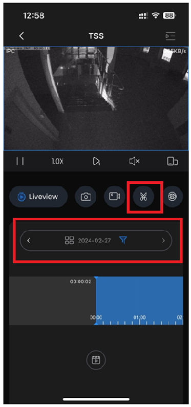 - V mobilnej aplikácii DMSS vyberte zariadenie – kanál, z ktorého chcete exportovať záznam. Taktiež vyberte aj dátum a čas videozáznamu, ktorý sa má exportovať. Pre výber videa kliknite na ikonku znázorňujúcu nožnice.