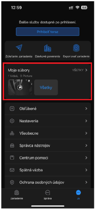 - Následne vás aplikácia vyzve, či chcete exportovať video. Kliknutím na tlačidlo OK dôjde k stiahnutiu videa. Zaznamenanú videonahrávku po stiahnutí nájdete v časti Moje súbory. Takto exportované video môžete následne zdieľať jednou z možností, ktorú vám ponúka váš smartfón.