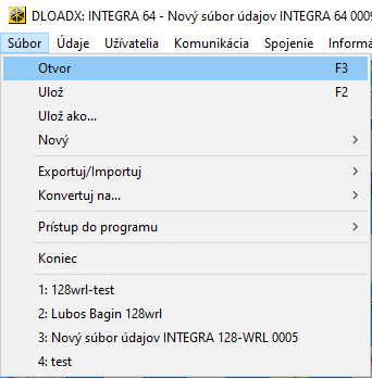 - súbor s príslušnými údajmi pre ústredňu INTEGRA.