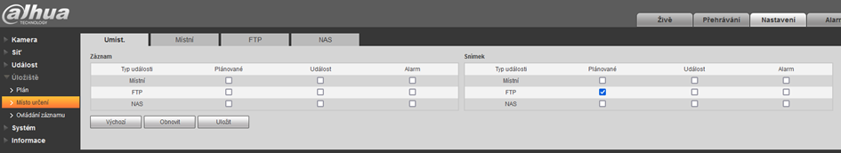 Nastavenie časozberu na Dahua kameru ukladaním na FTP.