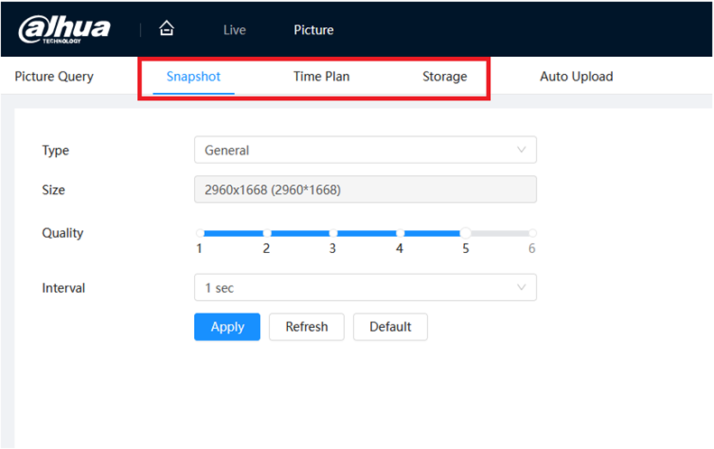 V Snapshot nastavíme parametre snímkov. V časti Kalendár nastavíme obdobie ukladania snímkov. V Úložisko nastavíme cieľ ukladanie FTP a nastavíme parametre FTP.