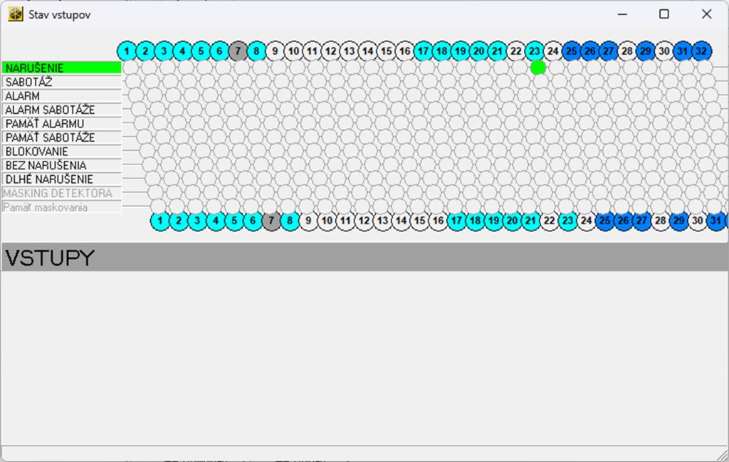V nastaveniach vstupov vyberte vstup, ktorý ste nastavili ako virtuálny v predchádzajúcich krokoch. V našom prípade vstup 23. Zapíšte názov, nastavte typ vstupu a funkciu podľa požiadaviek. (nastavenia sú rovnaké ako pri hardvérovom vstupe, PIR detektor a pod.)