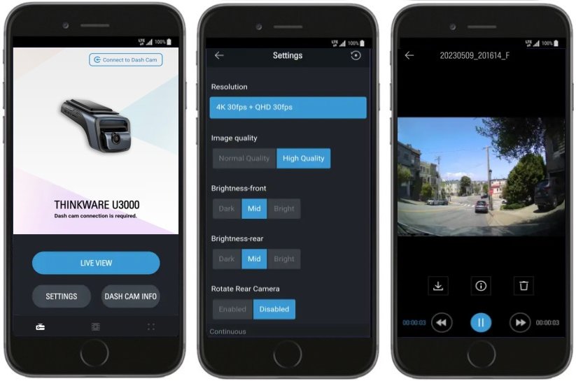 Pre pridanie Wi-Fi sietí do kamery a prvotné nastavenia nahrávania použijete DASH CAM LINK aplikáciu. Pre vzdialený prístup, nastavenie notifikácií, sledovanie histórie jázd sa využíva aplikácia THINKWARE CONNECTED. Kamera sa vždy pripojí na internet cez Wi-Fi sieť s najlepším signálom.