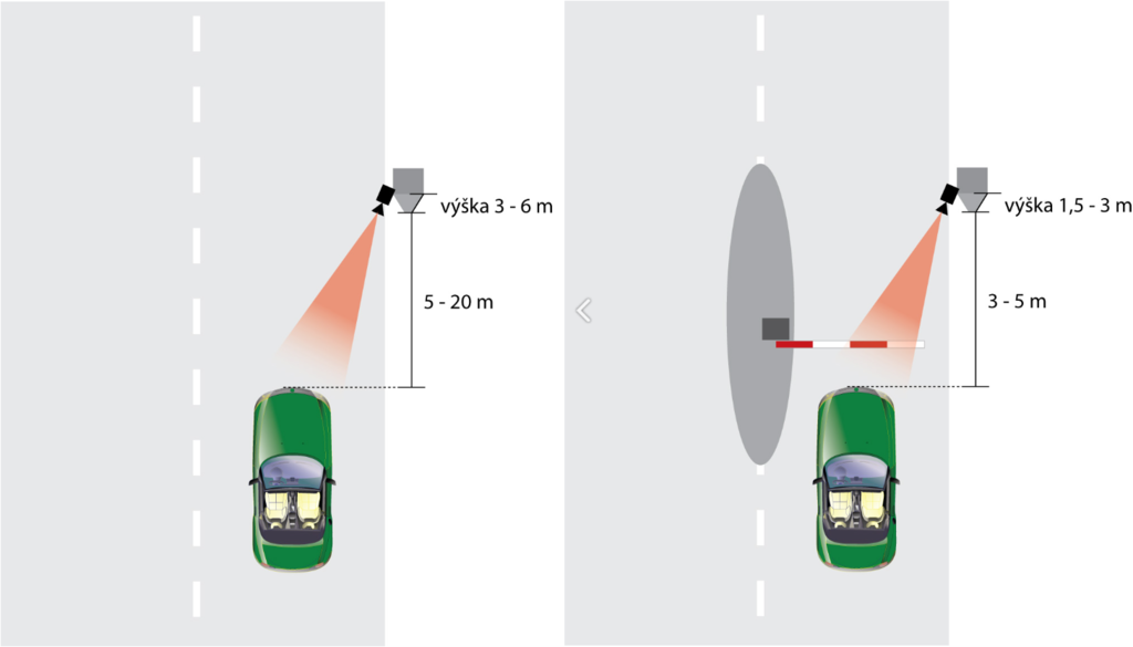 Schéma inštalácie kamery pre správne rozpoznávanie EČ.