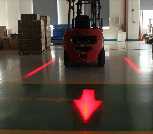 Osoby pohybujúce sa v priestoroch pohybu vozíka tak uvidia na zemi výstražnú šípku skôr, ako sa vozík objaví spoza rohu.